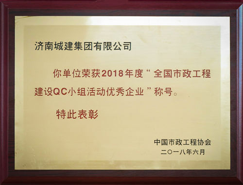 集团荣获“2018年度天下市政工程建设QC小组运动优异企业”