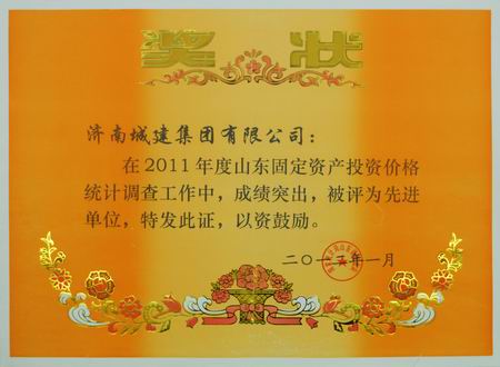 集团荣获2011年度山东牢靠资产投资价钱统计视察事情先进单位